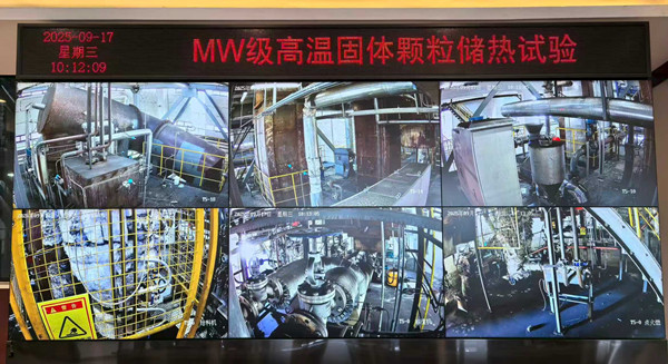 近日,研究团队完成了MW级高温固体颗粒储热中试试验,验证了多种固体颗粒在高温下的流态化储热工艺,实现了高温固体颗粒的高效快速储热,获得了不同粒径固体颗粒的储热性能及影响规律。储热系统实现了48小时连续稳定运行,固体颗粒储热温域超过650℃。