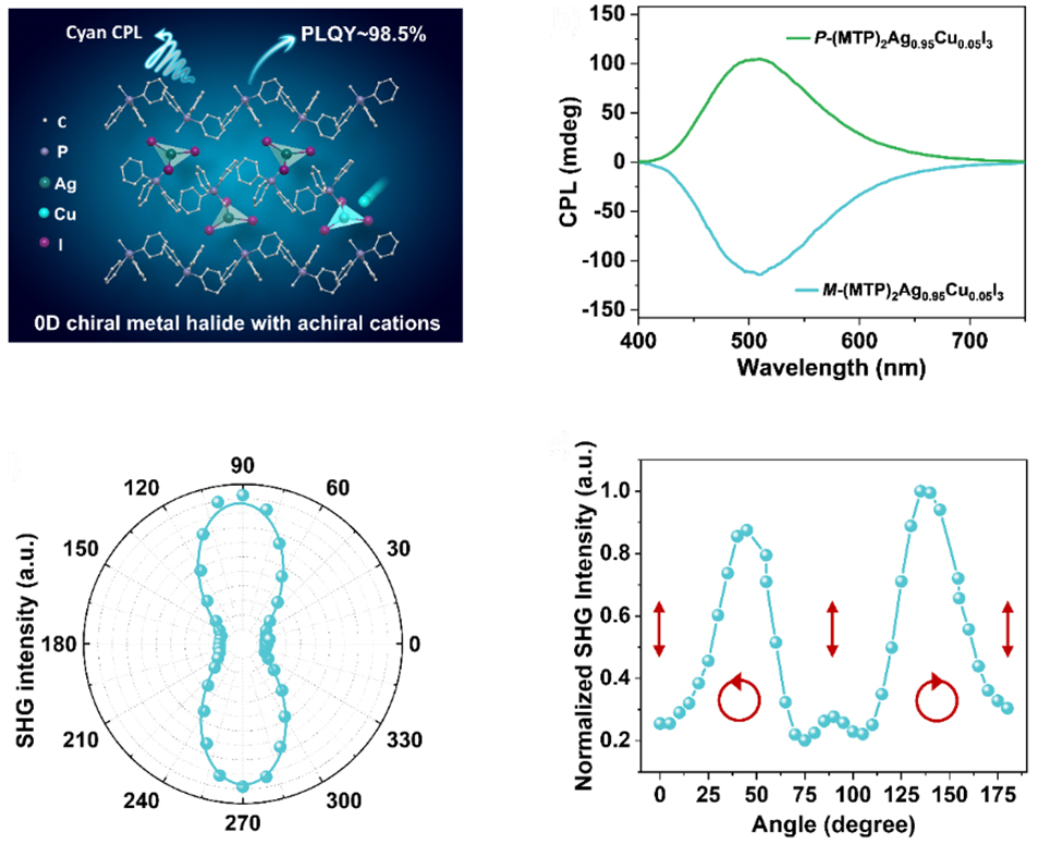 研究实现金属卤化物的高效青色圆偏振发光与手性非线性光学效应