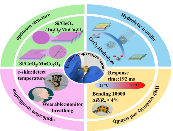 该成果不仅显著提升了超薄柔性温度传感器的综合性能,更为发展下一代电子皮肤、可穿戴设备等柔性智能感知系统提供了关键的技术支撑。