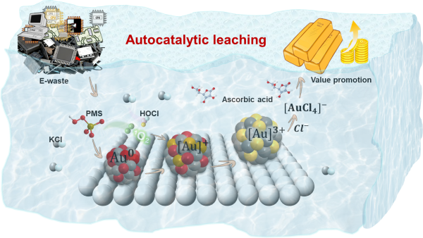 近日,中国科学院广州能源研究所团队提出自催化浸出策略,即使用过一硫酸氢钾和氯化钾混合水溶液,在无任何外部催化剂的条件下实现贵金属回收。