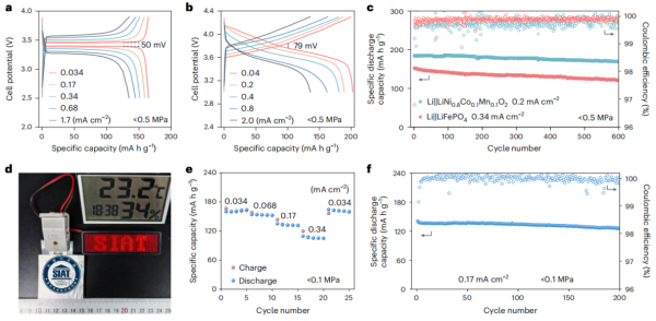 团队成功解决了LiMPS纳米片内锂离子传输的各向异性问题。形成的二维连续超离子传导通道,使PA-LiCdPS/PEO的室温离子电导率比无序排列的RA-LiCdPS/PEO高出三个数量级。此外,PA-LiCdPS/PEO和PA-LiMnPS/PEO电解质都表现出类似聚合物的机械柔韧性,有利于与电极保持紧密接触。