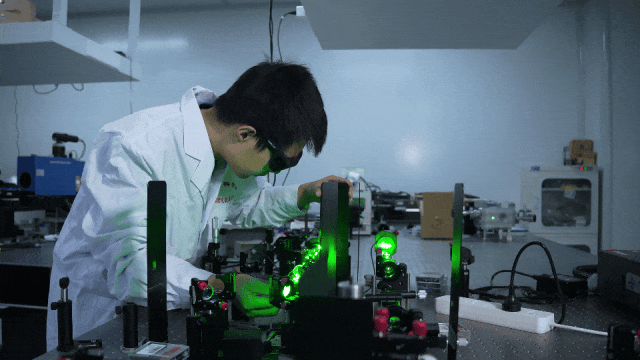 精密光学平台上的ABF晶体器件 科研人员进行激光实验