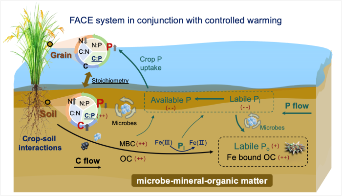 在全球气候变化持续加剧的背景下,大气CO2浓度升高与气候变暖的协同效应,正深刻改变农田生态系统的物质循环过程。稻田作为全球重要的粮食生产系统,其养分供给稳定性直接关系到粮食安全与农业可持续发展。磷是限制水稻生长的关键营养元素之一,植物主要以无机磷酸盐形式吸收利用,其生物有效性受土壤矿物学过程与微生物转化动力学的共同调控。同时,稻田灌溉与排水引发的氧化还原条件周期性波动,会进一步改变铁矿物形态、有机质反应活性及磷的吸附—释放平衡,使稻田供磷过程更为复杂。目前,学界对气候变化多因子协同作用下稻田供磷能力的长期演变规律及其调控机制仍缺乏系统认识,这不仅制约了气候变化背景下农田精准养分管理与风险评估的开展,也给未来粮食安全生产带来潜在不确定性。